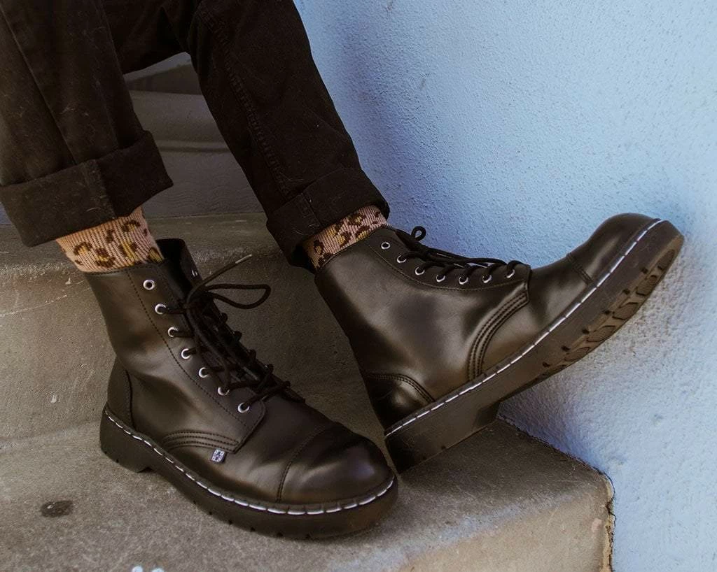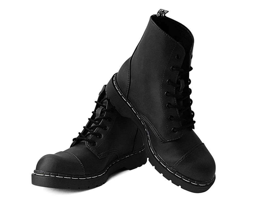 Boots for the rad. Features a vegan friendly, black faux leather upper with 7-eye lace-up detail. Has a 1β heel, removable memory foam padding for added comfort.
