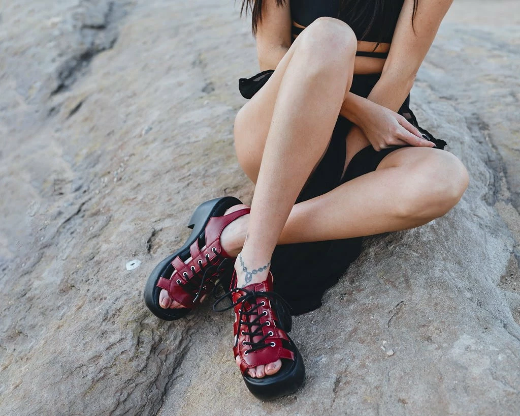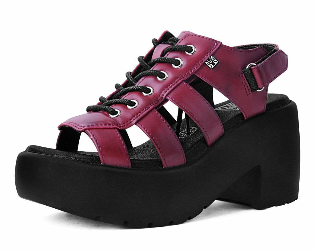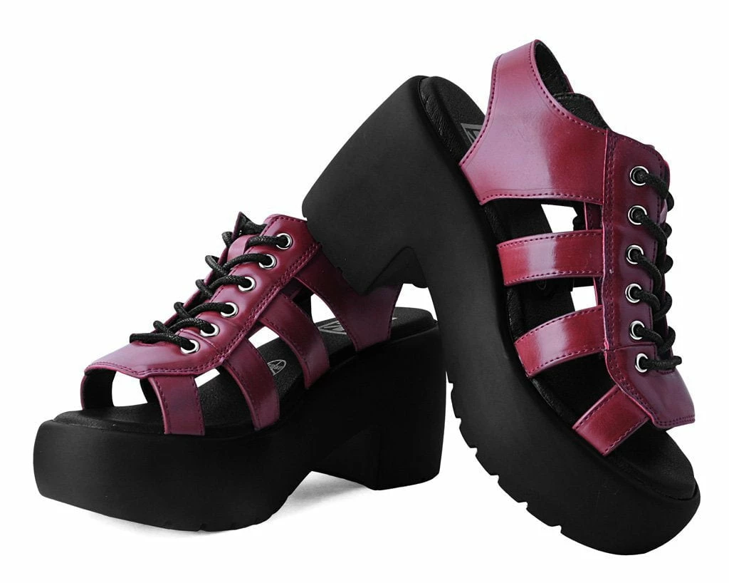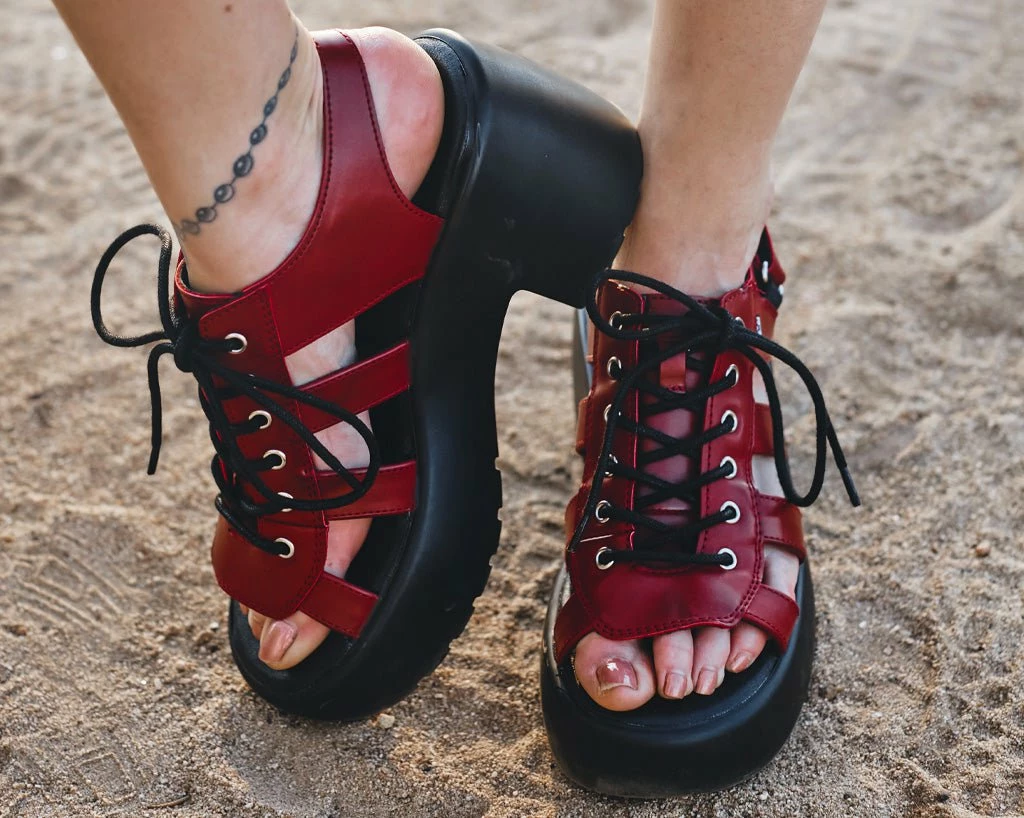 Bring back that 90βs style with these red lace up heels. The upper is made of a red brush-off PU with minimal detailing for optimal styling. Features a bubble heel that stands at 3 1/2β and 1 ΒΎβ in the front.