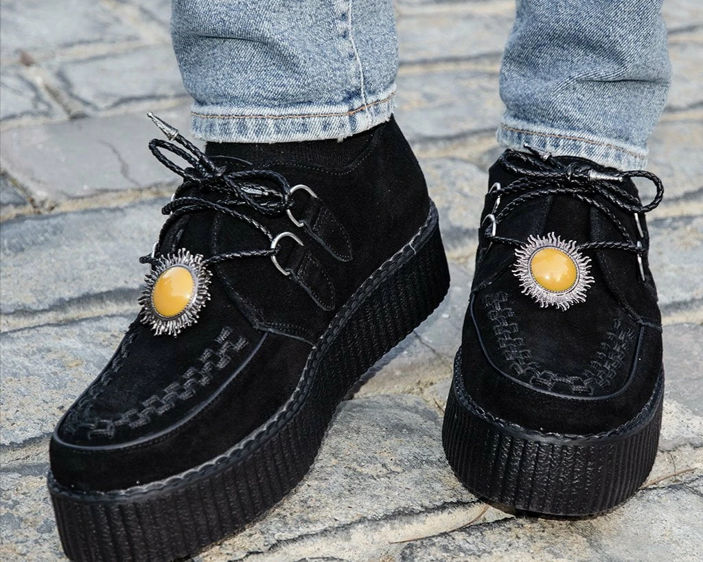 Add some extra class to your everyday style.Β Features a yellow sun pendant.Β Laces measure 33 Inches long and can only be used for 2 D-Ring Creepers & VLK Creeper Sneakers.Β