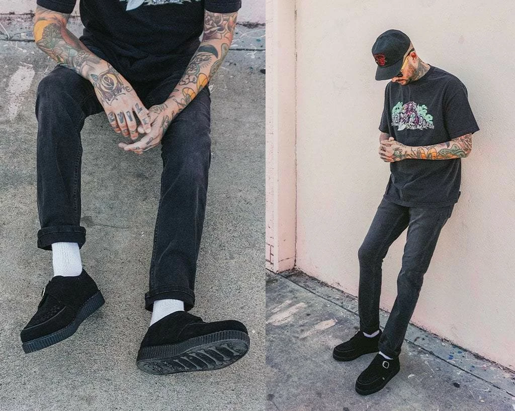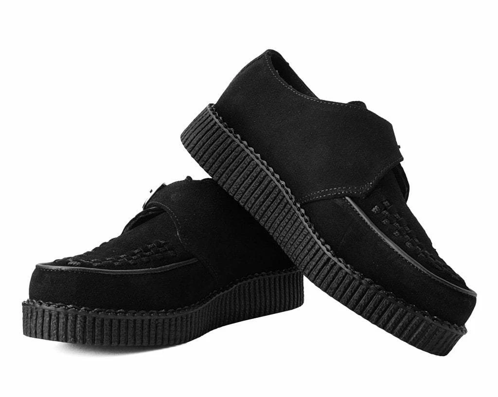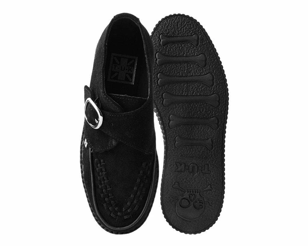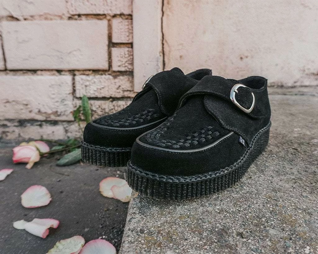 Iconic style that won’t quit. The timeless creeper that you know and love is back featuring a new sleeker sole that is more lightweight and flexible than ever. Features a low platform height that is approximately 1 ¼” at the heel and ¾” in the front and is made of a mixture of EVA and rubber that contributes to the sole’s bendability. Has black cow suede upper, a monk buckle strap closure and removable memory foam insoles for added comfort.