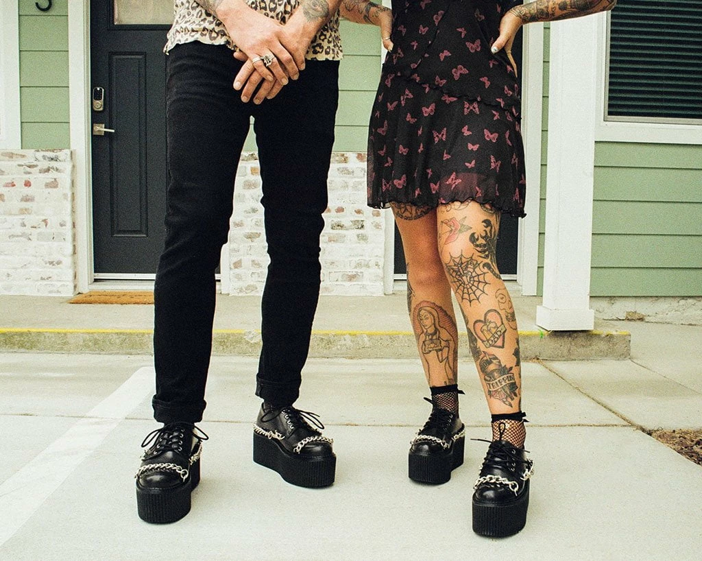 The perfect platform that goes with everything. Features a brush off faux leather upper on our lightweight VIVA stratocreeper sole that has a platform height approximately 3” at the heel and 2.5” in the front. Has chains that runs over the upper and behind the heel. Includes removable memory foam padding for extra comfort.