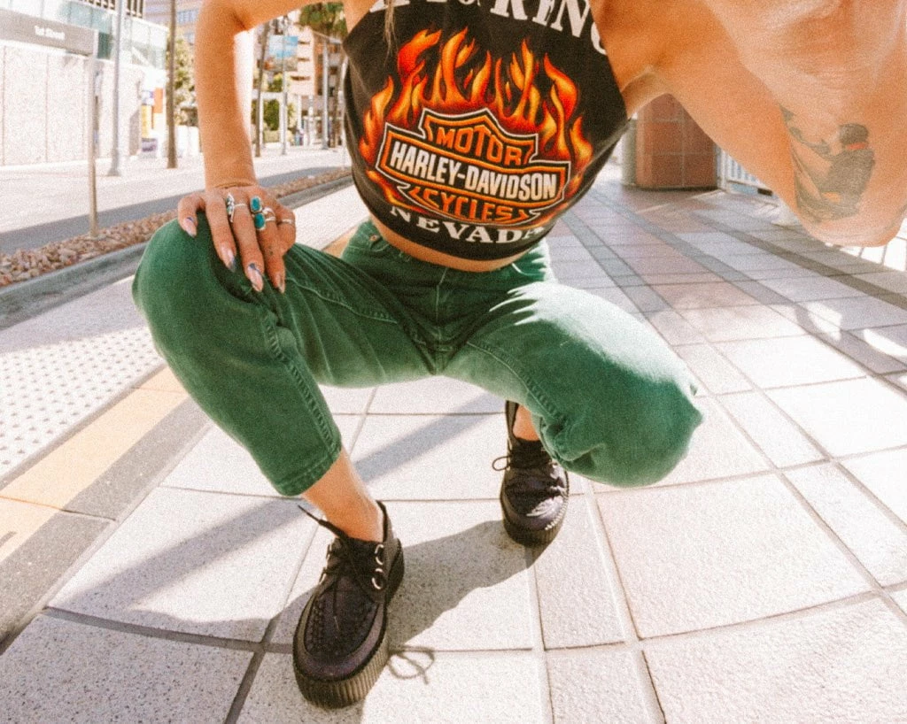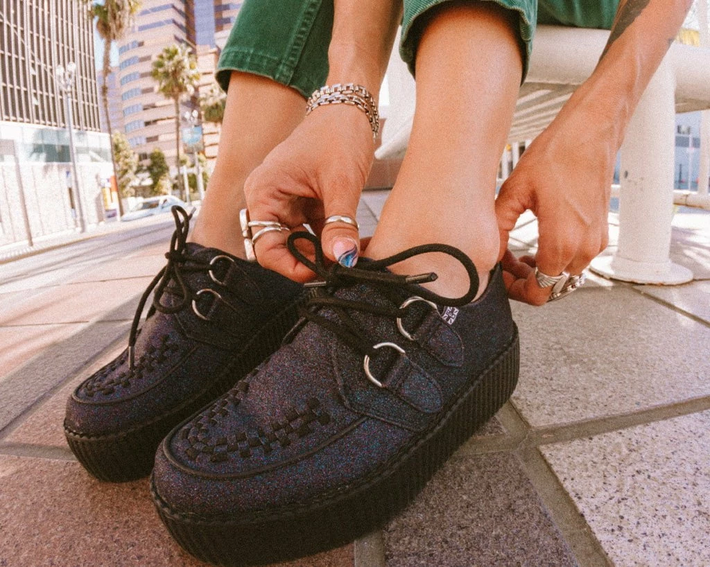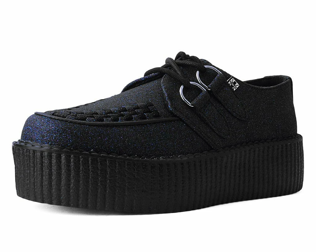 Our love language is new shoes. These creepers feature a vegan friendly black glitter upper that will keep you shining on all night long. Has a lightweight VIVA mondo sole that is approximately 1 3/4″ at the heel and 1 1/4″ in the front. Has removable memory foam padding for added comfort.