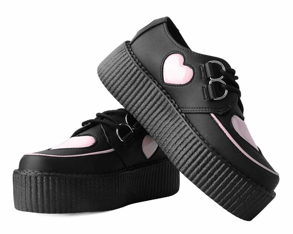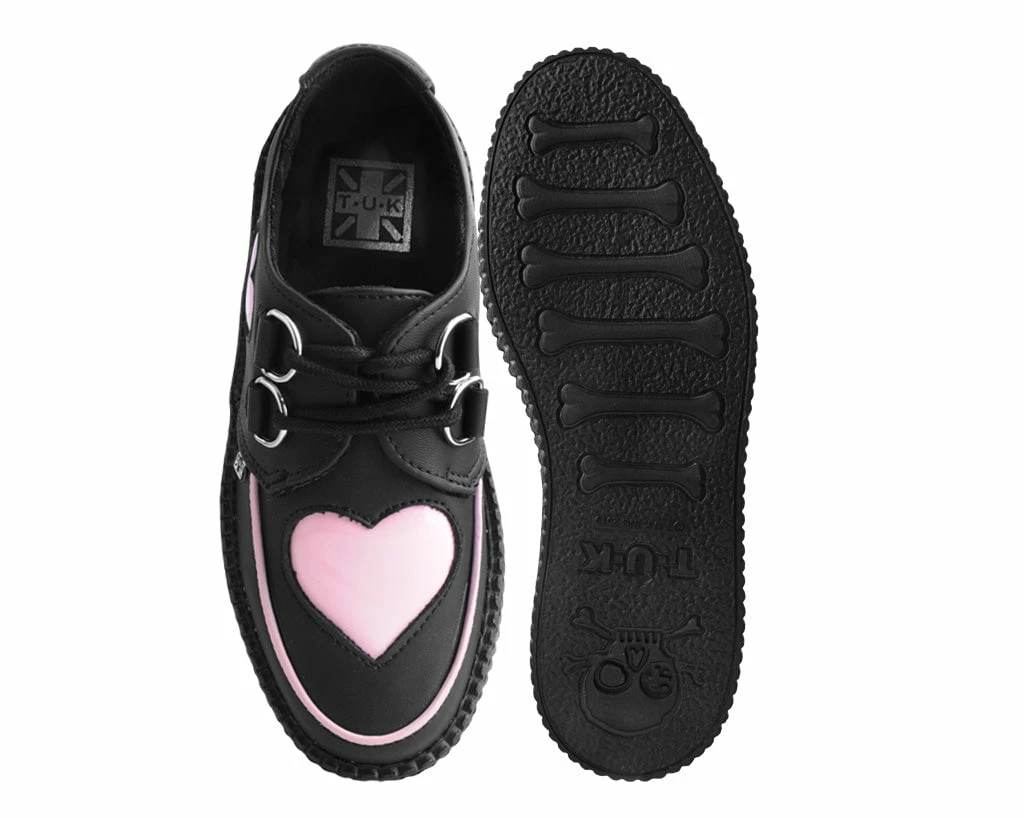 Break rules not hearts. Features a black upper with pink hearts, lace-up fastening, and our lightweight VIVA mondo sole that is approximately 1 ¾ā at the heel and 1 ¼ā in the front. Has removable memory foam padding for added comfort. Shoe can be easily cleaned with mild soap and water.